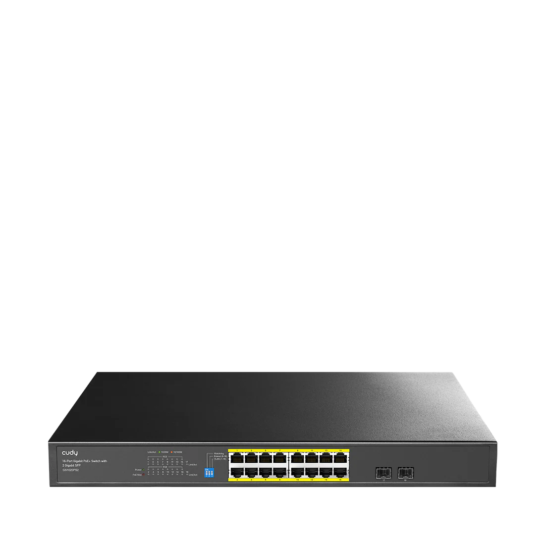 16× Gigabit RJ45 PoE ports, 2× 1.25G SFP slots